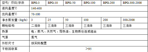 閉路循環(huán)噴霧干燥機(jī)技術(shù)規(guī)格
