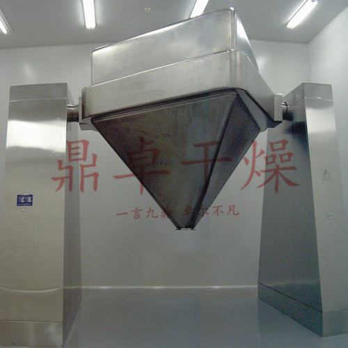 將物料裝入方錐形密閉混合桶內(nèi),料斗對稱的軸線與回轉(zhuǎn)軸軸線成一夾角,不同成份物料在密閉的料門中進行三維空間運動,產(chǎn)生強烈翻轉(zhuǎn)和擴散作用,達到很好的混合效果。整機設計新穎、結(jié)構(gòu)緊湊、外形美觀、混合均勻度達99%,體積裝料系數(shù)達0.8。