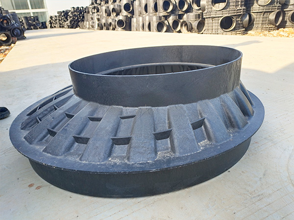 (3)、均勻沉降、抗壓。管道與井座柔性連接,管道與井座的粘土共同運(yùn)動(dòng)、很好的解決了傳統(tǒng)檢查井與塑料管道連接所產(chǎn)生的不均勻沉降問(wèn)題,有效防止地面塌陷。