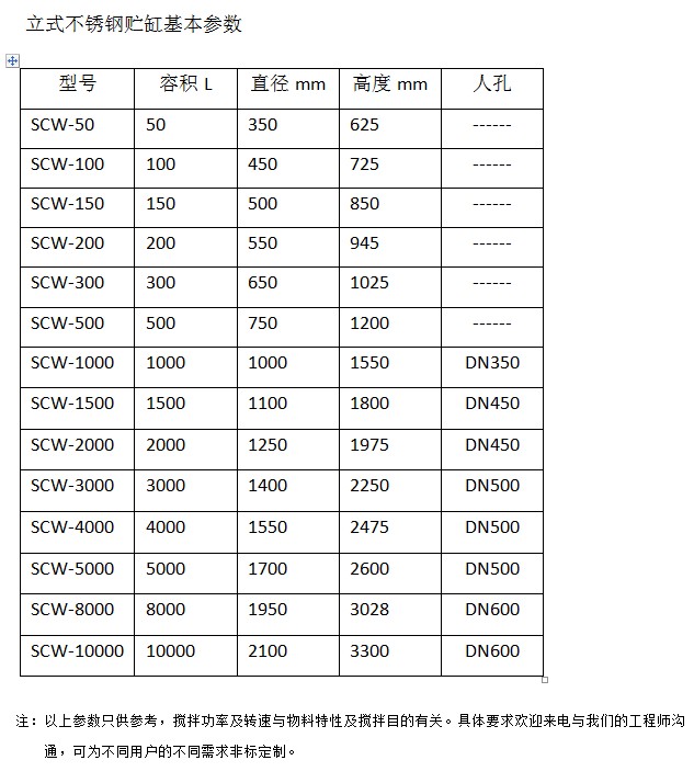 1、容積:50L、100L、200L、300L、500L、600L、1000L~5000L。